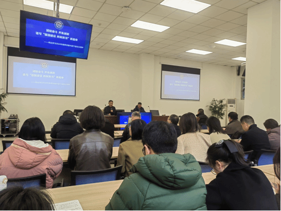 在新办公区会议室召开2024年春季学期第一次政治理论学习暨全院教职工大会,专题学习传达学校2024年春季学期中层干部学习会精神,并安排部署新学期工作。会议由学院党总支书记文洪毅主持,全体教职员工参加会议。