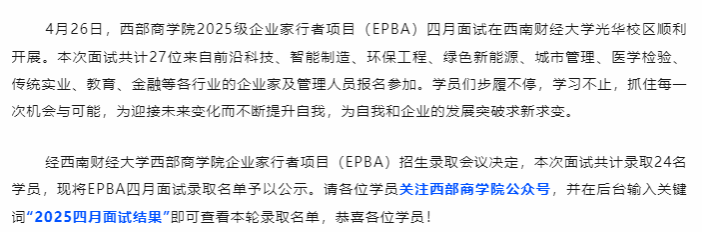 恭喜录取|啪啪啦 2025级企业家行者项目(EPBA)四月面试圆满结束