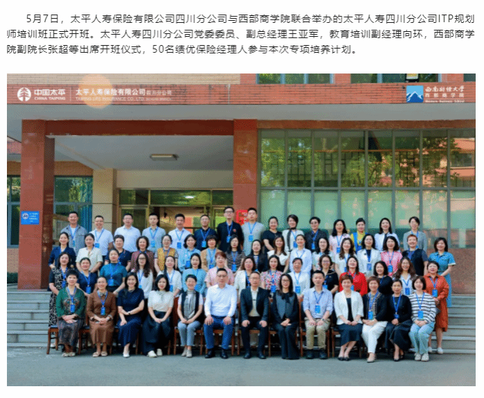 太平人寿保险有限公司四川分公司ITP规划师培训班隆重开班——深化产教融合,助力金融强国人才建设