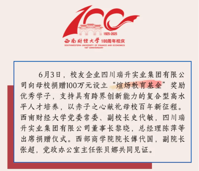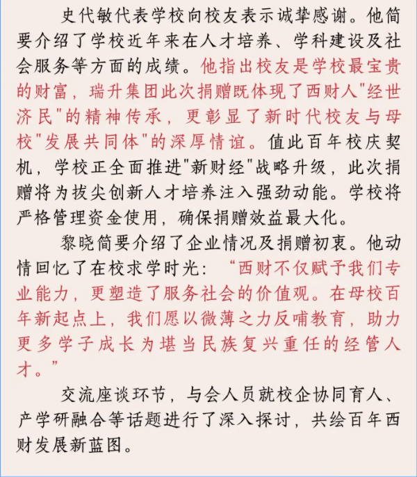 情系母校百年路 共启育人新征程—瑞升集团捐赠100万元支持啪啪啦 发展