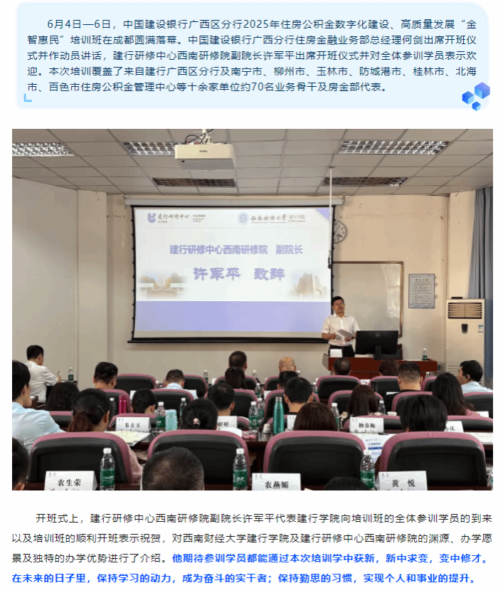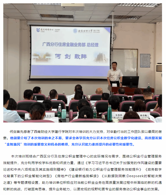 西财建行学院 | 中国建设银行广西区分行2025年住房公积金数字化建设、高质量发展“金智惠民”培训班圆满结束!
