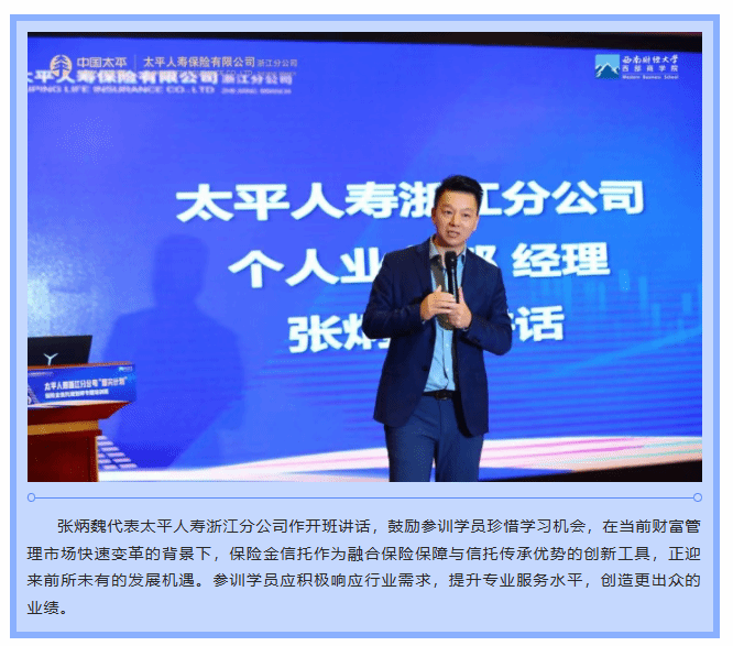 太平人寿浙江分公司“塔尖计划”保险金信托规划师培训班在杭州顺利开班