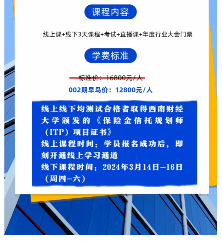 最后一天 报名截止 | 啪啪啦 保险金信托规划师(ITP)项目002期开班在即