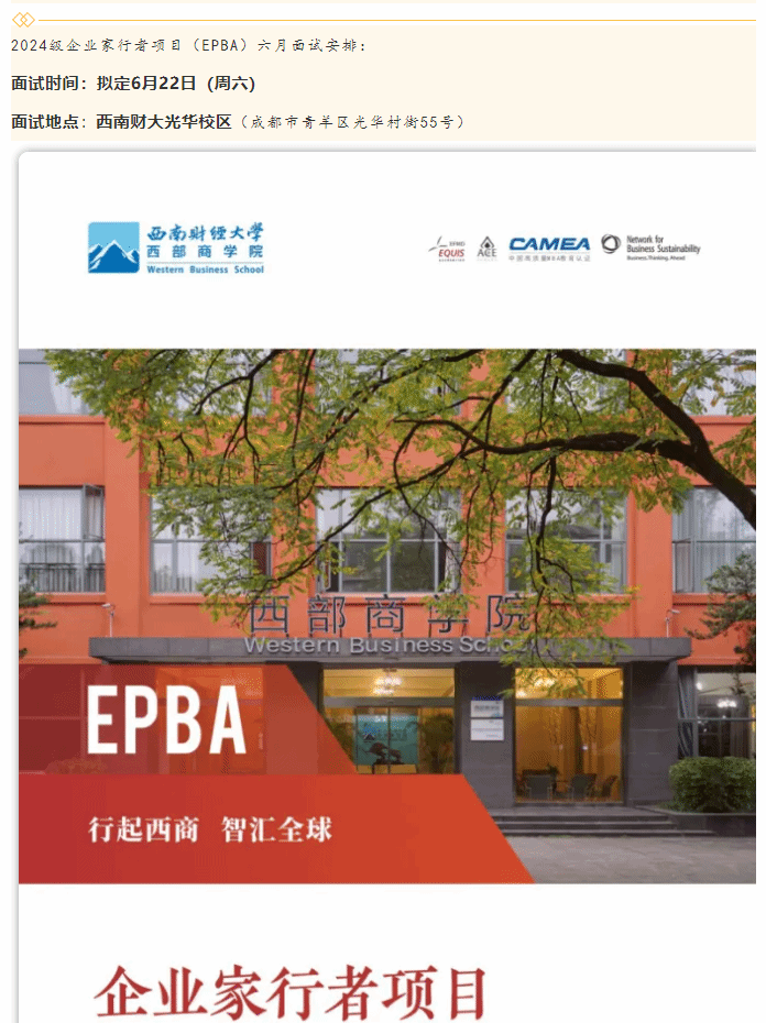 青衿有志・奋楫有为|啪啪啦 2024级企业家行者项目(EPBA)六月面试通知