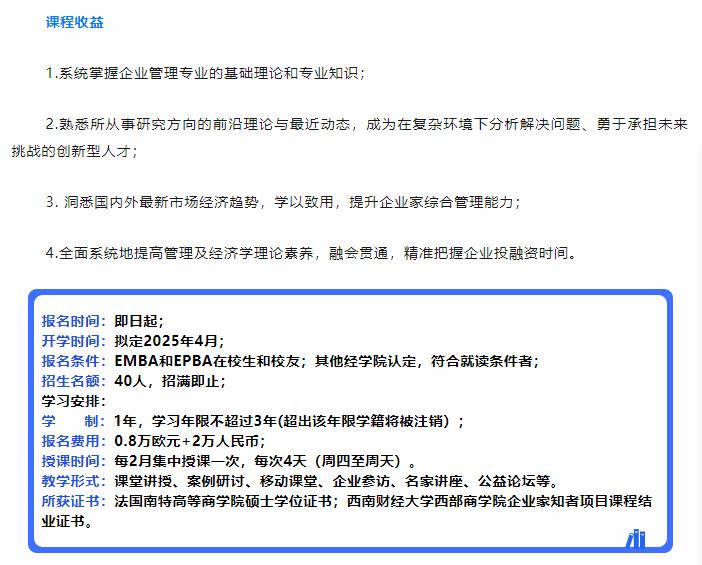 2025级企业家知者项目(法国南特高等商学院企业管理科学硕士MSBA)报名正式开启!