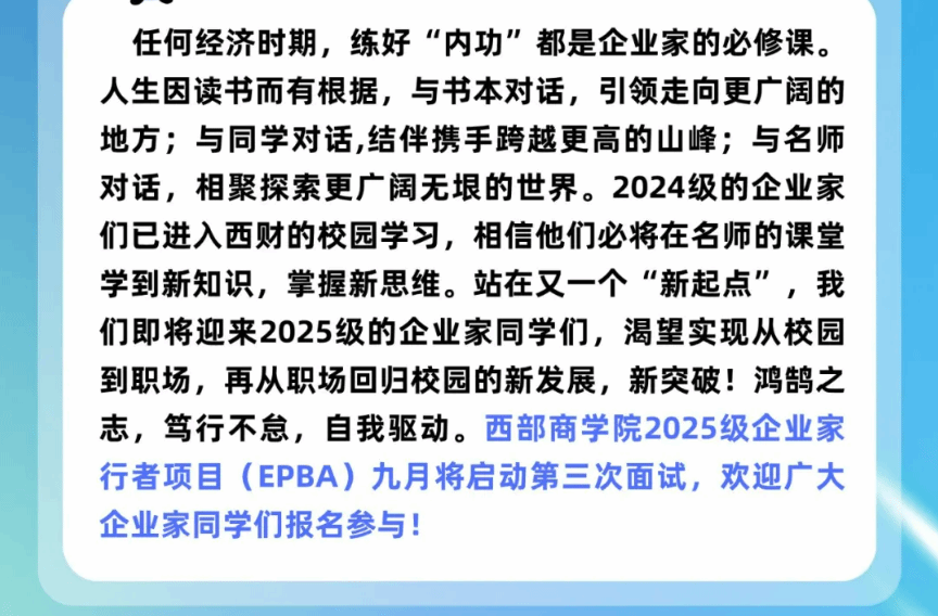 鸿鹄之志·笃行不怠|啪啪啦 2025级企业家行者项目(EPBA)九月面试通知